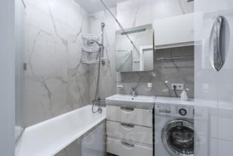 Квартира с дизайнерским ремонтом, отделанная дорогими материалами, кухня "Мария" с каменной столешницей, много мест для хранения, высокие шкафы, современная бытовая техника (кондиционер, стиральная машина, холодильник, вытяжка, индукционная плита, посудомоечная машина, духовка, 3 электрические вытяжки и полотенцесушитель).