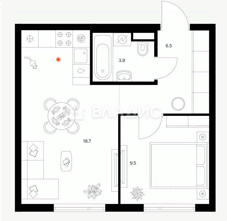 Жилая площадь9,5 м²