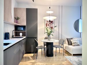 замечательная возможность сразу начать жить в новом месте, без траты времени и нервов на ремонт и обустройство. Вся мебель и техника, представленные в апартаментах остаются новым владельцам.