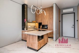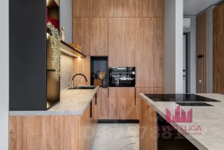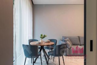 Выполнен качественный дизайнерский ремонт. Гостиная и спальня оборудованы стильной мебелью и полноценно укомплектованы техникой: кондиционеры, телевизоры, посудомоечная машина, духовой шкаф с функцией микроволновой печи, холодильник, измельчитель отходов, стиральная и сушильная машины — всё остаётся новым владельцам. Совмещённый санузел оснащён современной сантехникой. Окна выходят во двор, что гарантирует тишину и отсутствие уличного шума.