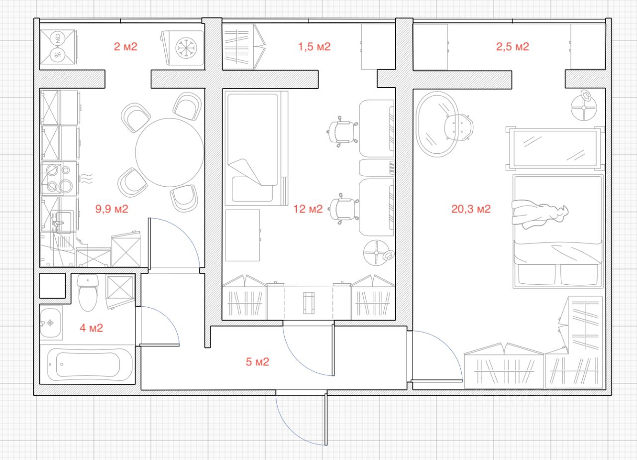 57,9 м²