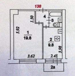 Общая площадь квартиры 35 кв. м, в т.ч. комната 19,9 кв. м и кухня 9,8 кв. м. Санузел совмещённый. Пол паркетный наборный (ёлочка). Застеклённый балкон на кухне.