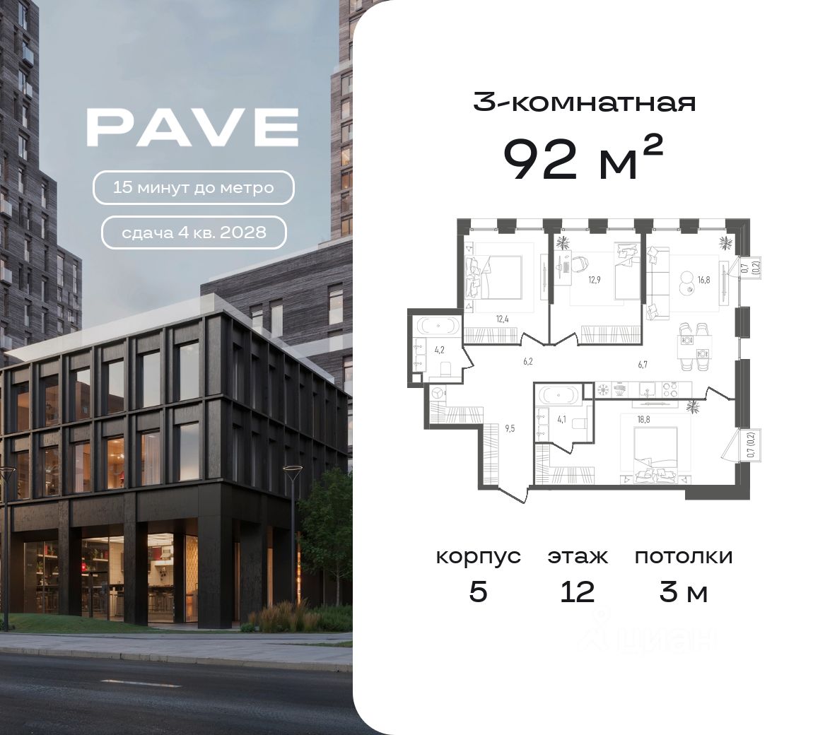 Проект бизнес-класса Pave от девелопера FORMA. Метро Павелецкая в пешей доступности, удобные выезды на ТТК и Садовое кольцо. Архитектура от бюро MAYAK. Благоустройство дворов — Magly. Приватный внутренний двор с водной гладью и местами для отдыха, коворкинг под открытым небом. Детские площадки с уникальным игровым оборудованием, спортивные площадки с зоной воркаут. Квартиры с панорамным джамбо остеклением, французскими балконами, террасами, мастер-спальнями и гардеробными. Высота потолков от 3,1 м. На последнем этаже пентхаусы с каминами и высотой потолков 3,6 м. Дизайнерское гранд-лобби для резидентов с фит-рум, коворкингом и общественной гостиной. Двухуровневый подземный паркинг и келлеры.