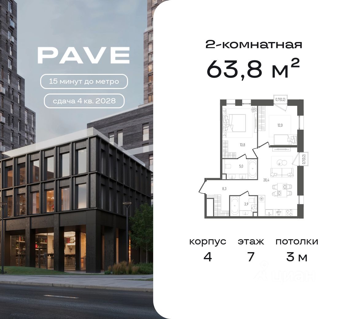 Проект бизнес-класса Pave от девелопера FORMA. Метро Павелецкая в пешей доступности, удобные выезды на ТТК и Садовое кольцо. Архитектура от бюро MAYAK. Благоустройство дворов — Magly. Приватный внутренний двор с водной гладью и местами для отдыха, коворкинг под открытым небом. Детские площадки с уникальным игровым оборудованием, спортивные площадки с зоной воркаут. Квартиры с панорамным джамбо остеклением, французскими балконами, террасами, мастер-спальнями и гардеробными. Высота потолков от 3,1 м. На последнем этаже пентхаусы с каминами и высотой потолков 3,6 м. Дизайнерское гранд-лобби для резидентов с фит-рум, коворкингом и общественной гостиной. Двухуровневый подземный паркинг и келлеры.