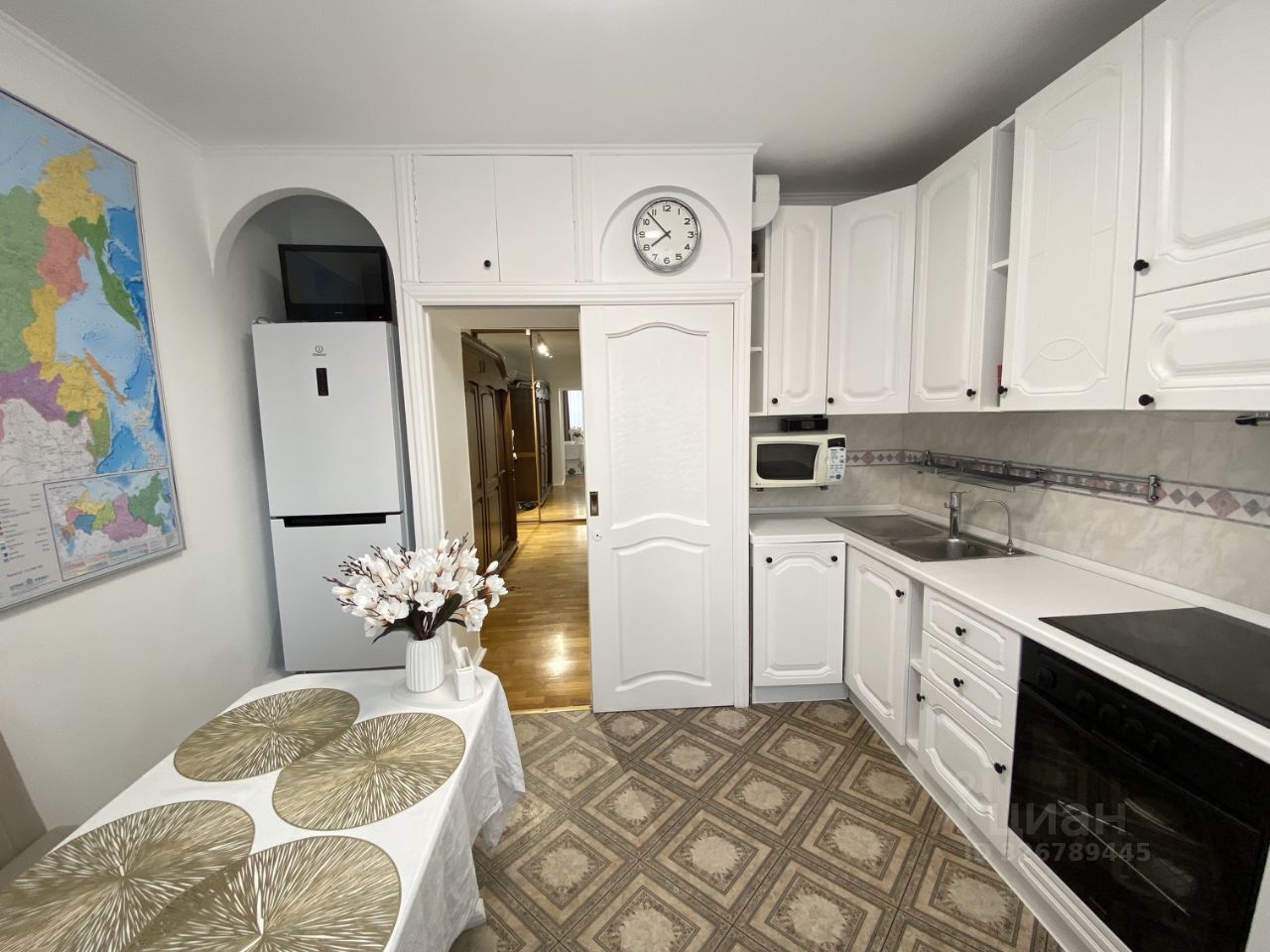 Кухня и двери из массива. В квартире частично остается мебель, шкафы в коридоре, кухонный гарнитур с бытовой техникой(ПММ, измельчитель бытовых отходов, варочная панель, духовой шкаф, фильтр для воды).