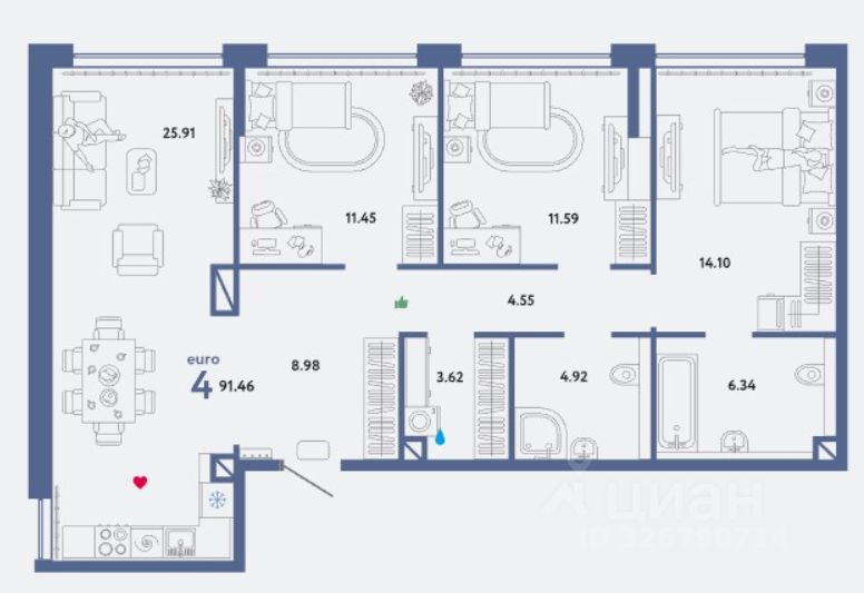 К продаже предлагается просторная квартира формата евро4 в ЖК Wow.