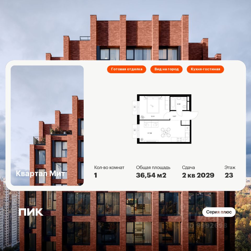 Новостройка! Продается 1-комн. кв-ра площадью 36,54 кв.м, (Корпус 3.2, Секция 2) 19 этаж 26-этажного дома в Квартал Мит от ПИК. "Квартал Мит" строится в экологически чистом районе Митино, где по соседству расположен большой лесопарк, а с двух сторон протекают реки Сходня и Журавка. Для семей с детьми здесь появится школа и два детских сада.