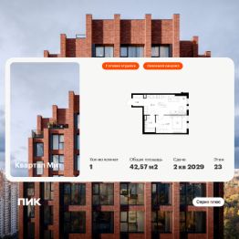 Новостройка! Продается 1-комн. кв-ра площадью 42,57 кв.м, (Корпус 3.4, Секция 4) 23 этаж 32-этажного дома в Квартал Мит от ПИК. "Квартал Мит" строится в экологически чистом районе Митино, где по соседству расположен большой лесопарк, а с двух сторон протекают реки Сходня и Журавка. Для семей с детьми здесь появится школа и два детских сада.