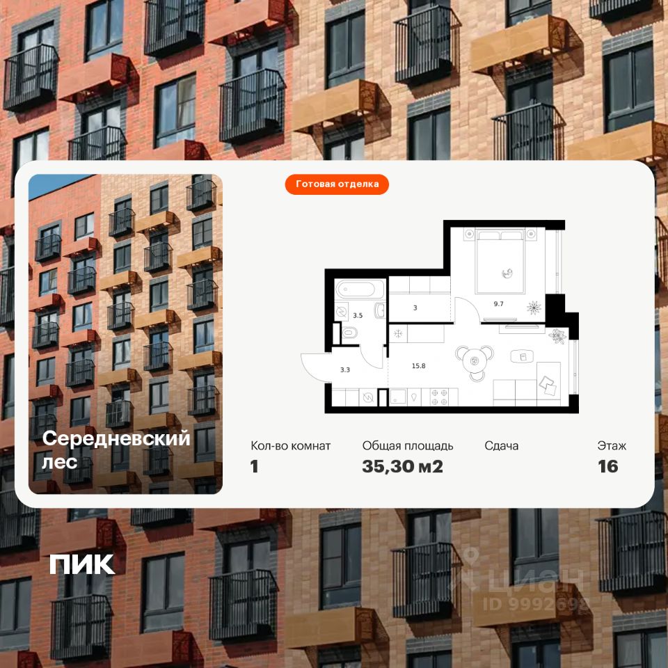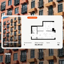 Продаётся 1-комн. квартира площадью 35,3 кв.м на 5 этаже 16 этажного дома (Корпус 2.1.6, Секция 6) проекта ПИК Середневский лес. Светлый просторный подъезд на уровне земли, функциональная планировка, большие окна, c отделкой.