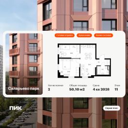 Продаётся 2-комн. квартира площадью 50,1 кв.м на 6 этаже 24 этажного дома (Корпус 82.7, Секция 7) проекта ПИК Саларьево парк. Светлый просторный подъезд на уровне земли, функциональная планировка, большие окна, c отделкой.