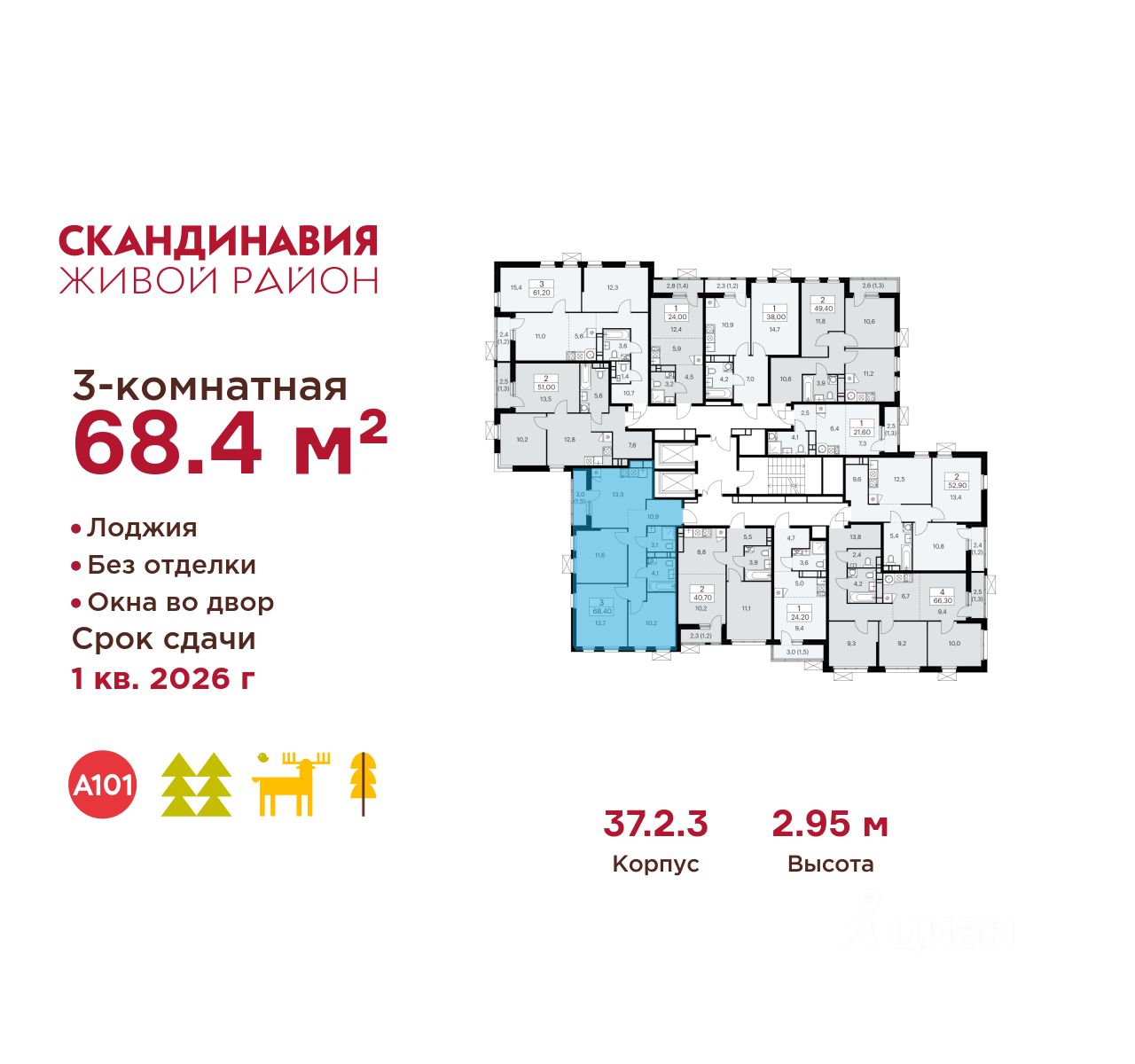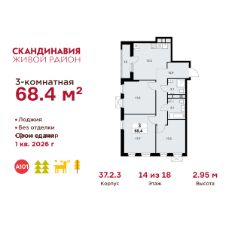 Продается трехкомнатная квартира 511 в новостройке Жилой район "Скандинавия" по адресу Москва, ТиНАО, Новомосковский АО, Сосенское С/П, Коммунарка пос., жилой комплекс Скандинавия, 37.2.3, район Коммунарка, Новомосковский административный округ, Москва. Общая площадь квартиры - 68.40 кв. м., этаж 14 из 18, секция 3. Тип проекта, по которому построен дом - монолит, компания-застройщик - ООО "А101". Стоимость квартиры - 26041248 Р. Срок сдачи - 1 квартал 2026.