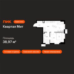 Новостройка! Продается 1-комн. кв-ра площадью 38,97 кв.м, (Корпус 3.4, Секция 4) 27 этаж 32-этажного дома в Квартал Мит от ПИК. "Квартал Мит" строится в экологически чистом районе Митино, где по соседству расположен большой лесопарк, а с двух сторон протекают реки Сходня и Журавка. Для семей с детьми здесь появится школа и два детских сада.