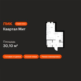 Новостройка! Продается 1-комн. кв-ра площадью 30,1 кв.м, (Корпус 3.4, Секция 4) 10 этаж 32-этажного дома в Квартал Мит от ПИК. "Квартал Мит" строится в экологически чистом районе Митино, где по соседству расположен большой лесопарк, а с двух сторон протекают реки Сходня и Журавка. Для семей с детьми здесь появится школа и два детских сада.