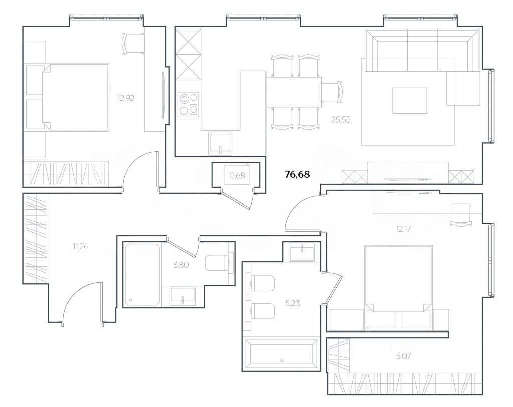 Техническое наполнение обеспечено от ведущих европейских производителей: лифты ThyssenKrupp, автоматизация Schneider Electric. В доме предусмотрено центральное кондиционирование, очистка воды до состояния питьевой, система контроля доступа с функцией распознавания лиц, консьерж-сервис, электронные замки.