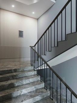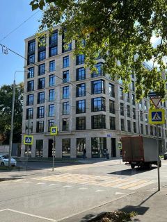 Архитектурный облик здания выполнен в неоклассическом стиле с использованием отделочных материалов премиум класса: фасад из юрского мрамора, панорамные окна.