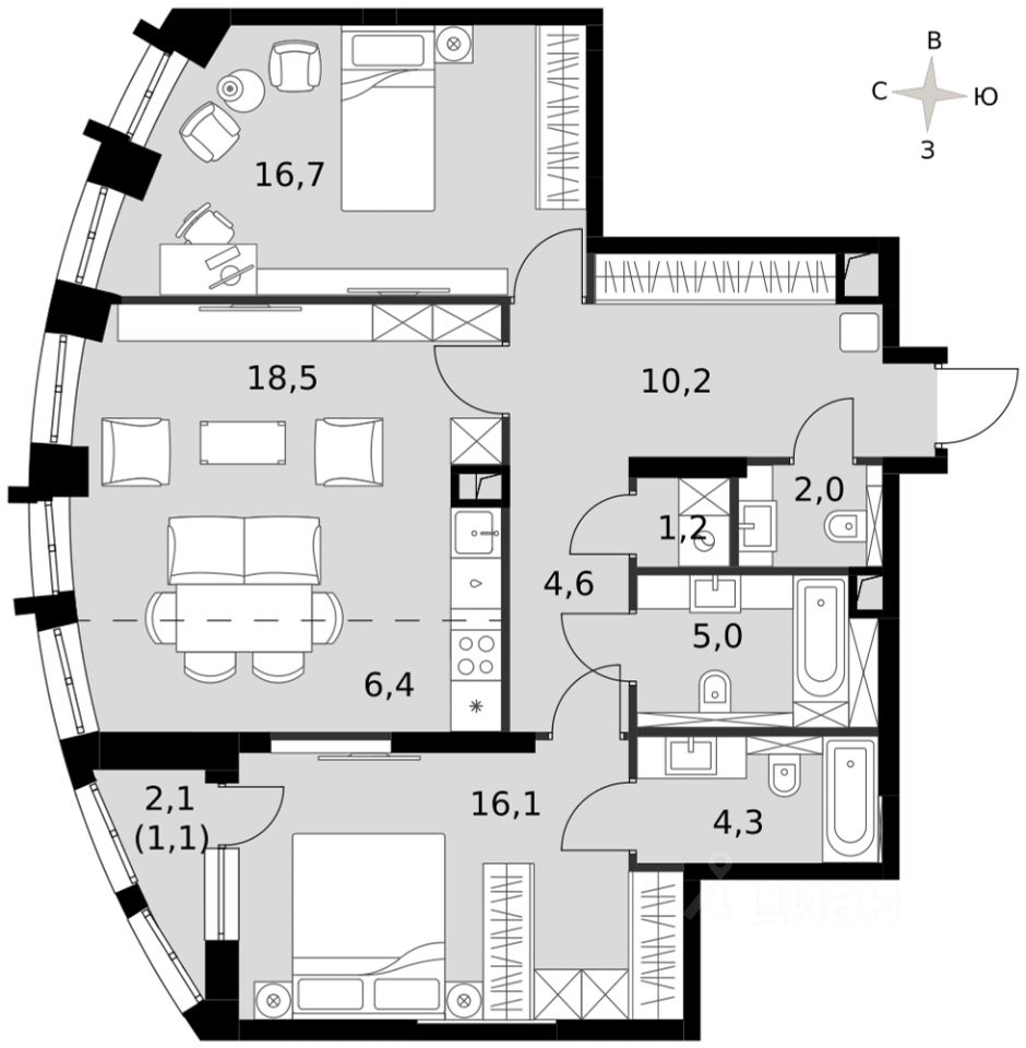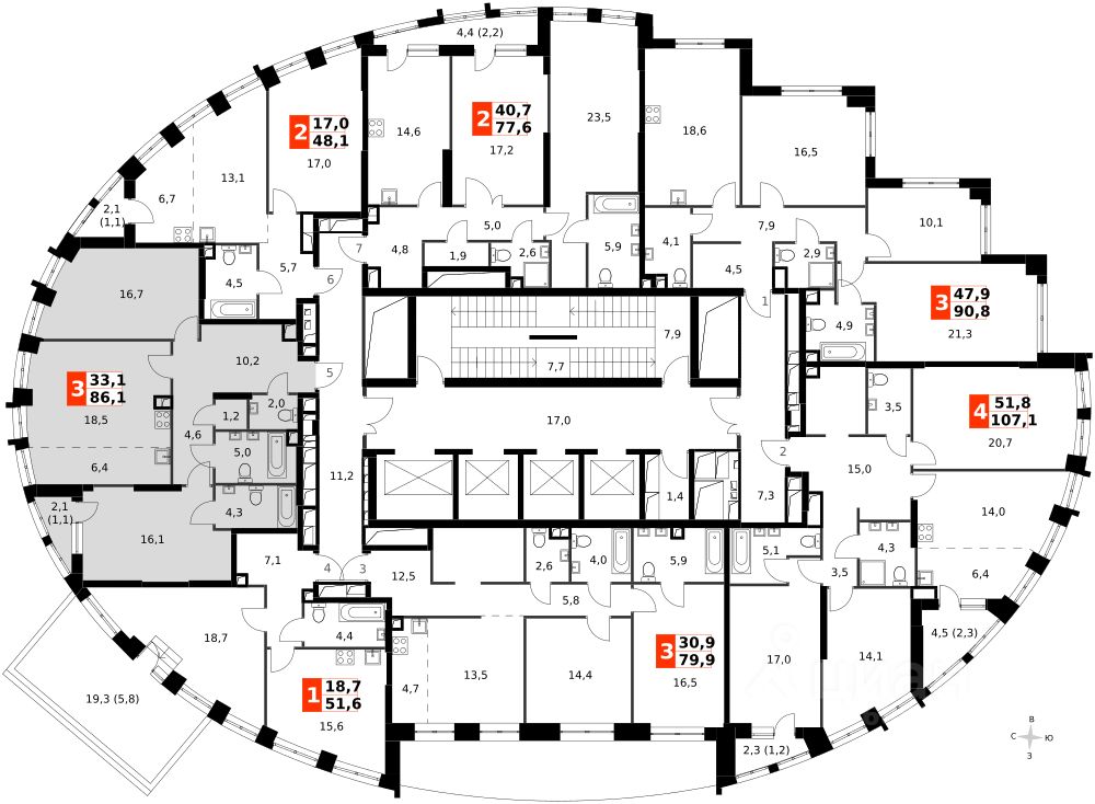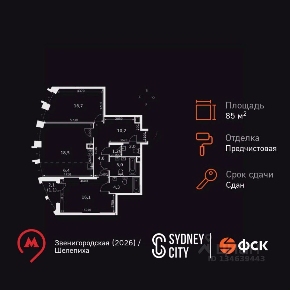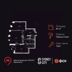 Продаётся 3-к квартира номер 411 общей площадью 85.3 кв.м. на 21-м этаже 44 этажного здания. Отделка Whitebox. Цена с учётом скидки.