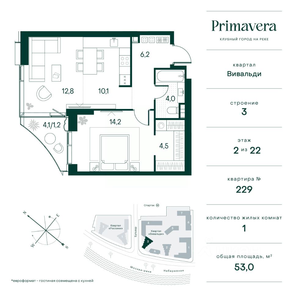 Клубный город на реке "Примавера" — это современный жилой комплекс премиум-класса, расположенный на первой береговой линии Москвы-реки в экологически чистом районе Покровское-Стрешнево. Под панорамными окнами квартир находится собственный экопарк с продуманной сетью прогулочных дорожек и современными детскими и спортивными площадками. За парком расположена набережная с собственным пляжем и зонами для отдыха. Клубный город на реке "Примавера" предлагает широкий выбор планировок для различных жизненных сценариев: от просторных однокомнатных квартир до пентхаусов и жилых помещений с террасами и патио. Выберите из 120 вариантов эргономичных планировок стандартного и евроформата. Из каждой квартиры открываются красивые виды на реку с углом обзора в 270 градусов. Дизайнерские лобби предлагают панорамный обзор на благоустроенный двор. Высокие потолки в 6 метров и качественная отделка создают атмосферу, схожую с пятизвездочными отелями. В "Примавера" есть всё необходимое для комфортной жизни в мегаполисе: • Образование для детей в шаговой доступности: 4 школы, 8 детских садов и развивающие центры с кружками и секциями. • Удобства на расстоянии приятной прогулки: супермаркеты, кафе, рестораны с верандами, салоны красоты, аптеки и многофункциональный центр для шоппинга и развлечений. • Умный дом: автоматизированное бесконтактное управление основными системами доступа и безопасности через мобильное приложение. Клубный город на реке "Примавера" выгодно сочетает комфорт городской жизни с близостью к природе. Живите в месте, где все создано для вашего удобства!