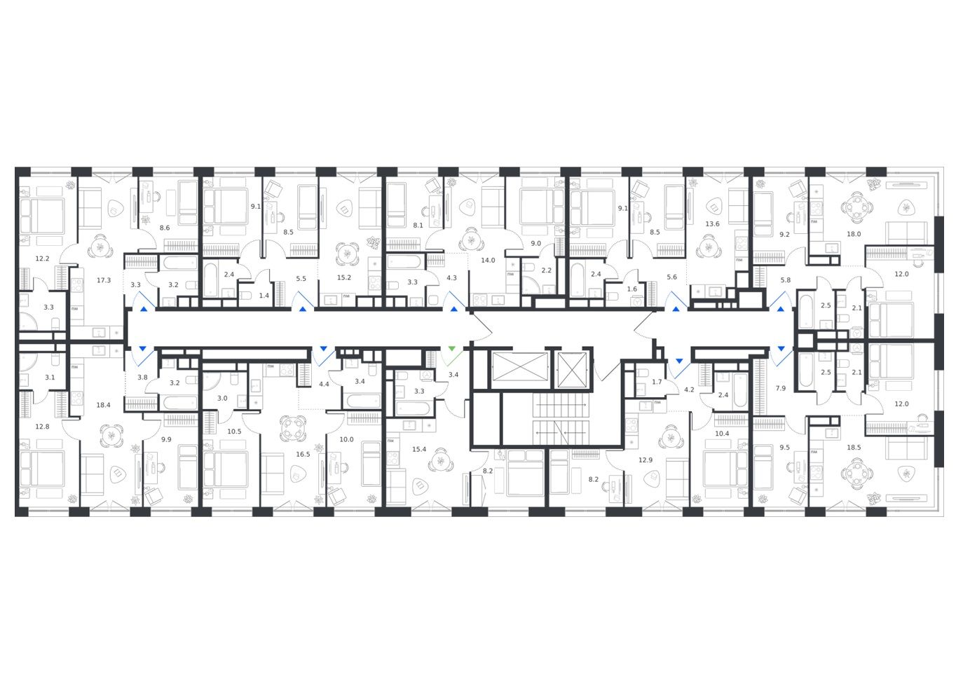 между квартирами светлые холлы. керамогранитный пол, энергоэффективная подсветка и цветовые акценты. никакой монотонности.