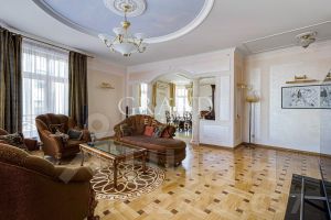 В квартире выполнен классический дизайн отдлеки с использованием дорогостоящих натуральных материалов и техники. Тихо. Много света за счет больших окон и их количества, виды на на 2 стороны: в тихий переулок и на Старый Арбат. Высота потолков в квартире 3,2м