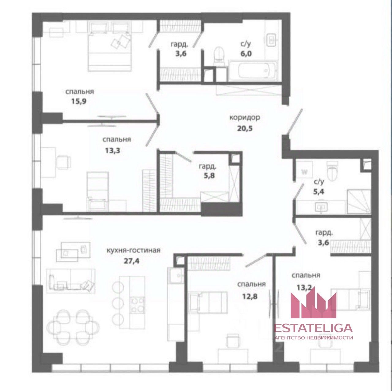 Id 60712. Просторная видовая квартира на 33 этаже в небоскребе ЖК "Событие-4" 2027