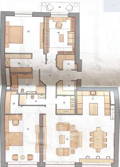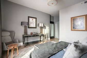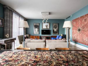 - в левой части квартиры расположена огромная кухня-гостиная, гостевая спальня, гардеробная, постирочная, санузел с душем