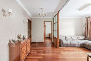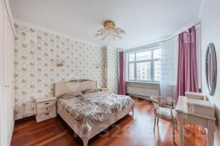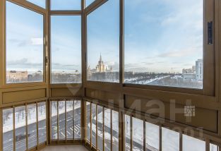 По планировке: просторная гостиная объединена с кухней, три спальни, кабинет, два санузла, гардеробная комната, постирочная два балкона. Окна квартиры ориентированы на две стороны - во двор и на город и главное здание МГУ. Высота потолков 3м.