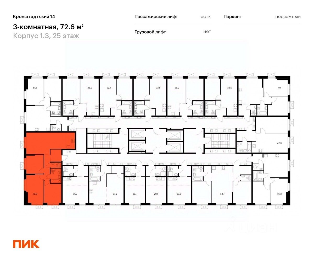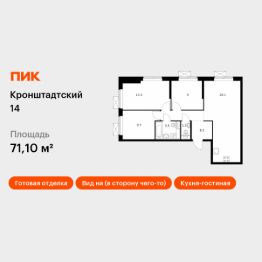 Продаётся 3-комн. квартира площадью 71,1 кв.м на 25 этаже 33 этажного дома (Корпус 1.3, Секция 2) проекта ПИК Кронштадтский 14. Светлый просторный подъезд на уровне земли, функциональная планировка, большие окна, c отделкой.