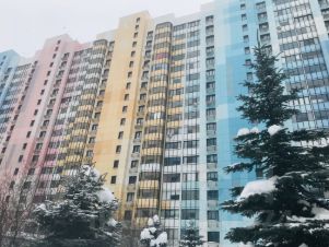 Новый, яркий, позитивный квартал с динамичными цветами фасадов домов и подъездов. Ухоженный двор с елями, детскими и спортивными площадками и удобными скамейками для отдыха.