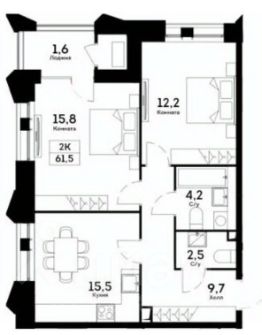 Квартира расположена на 18 этаже, имеет общую площадь 64 кв.м. Квартира продается без отделки. Планировочное решение потенциально предполагает 2 спальни и просторную кухонно гостиную зону, лоджия с панорамными окнами, вид из которой открывается на набережную Москвы-реки.