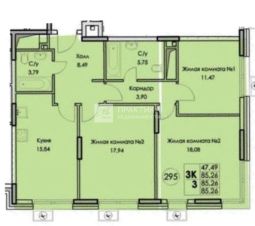 Три изолированные комнаты, большие окна во двор и на улицу. Интерьерный акцент угловое окно придаёт помещению объём и панорамный вид.