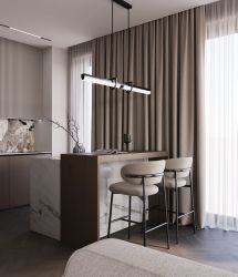 Дизайнерский проект выполнен в стиле современный минимализм с элементами неоклассики.