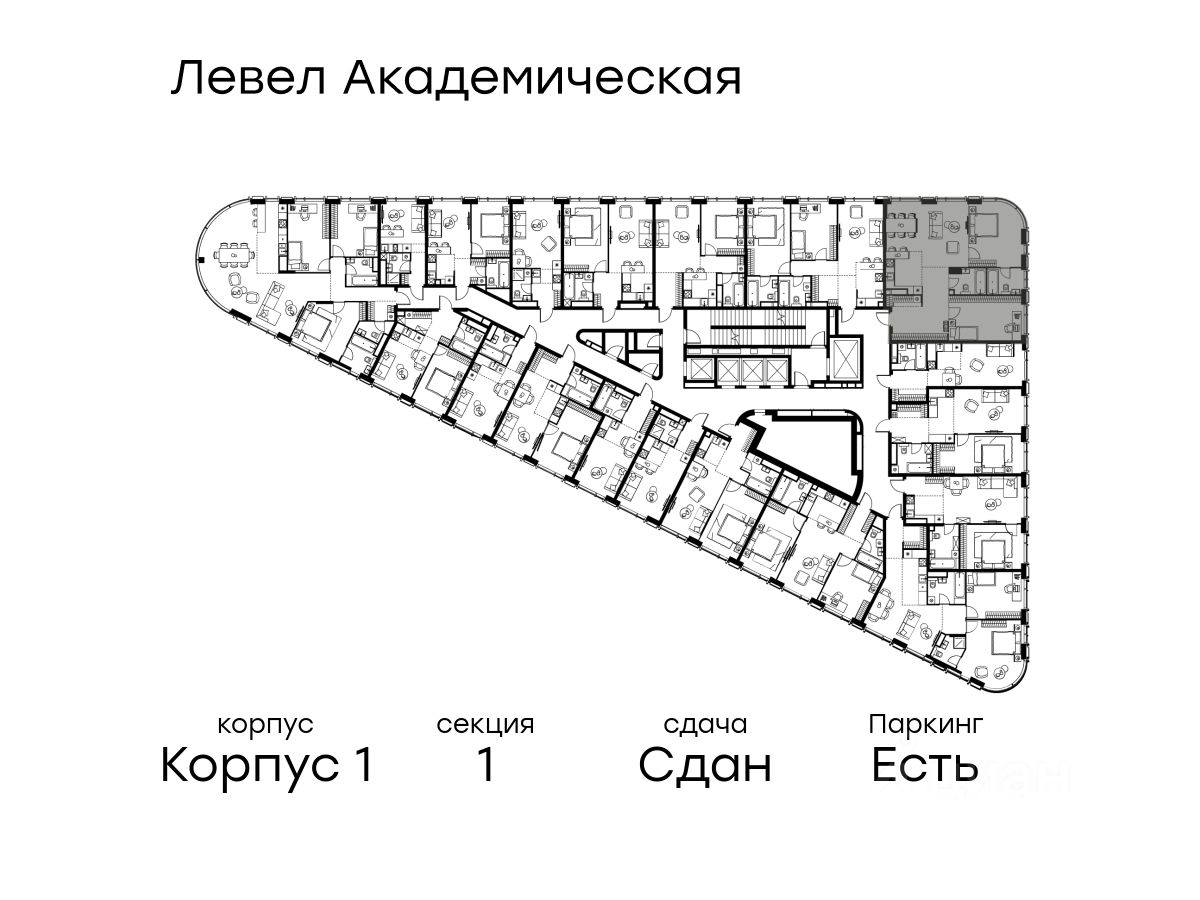 В Академическом районе продаётся 3-комнатная квартира площадью 94.00 кв.м без отделки. Квартира расположена на 15-м этаже 19-этажного жилого комплекса бизнес-класса Левел Академическая (компания Level Group).