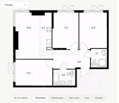 Чистовая отделка от застройщика. Трехкомнатная квартира с просторной кухней-гостинной!