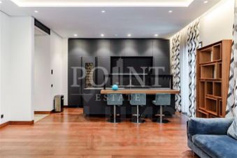 В квартире выполнена дизайнерская отделка в современном стиле. Большое количество мест для хранения. Установлена система умного освещения, во всех ключевых зонах (санузлы, кухня, прихожая) подключен подогрев полов.