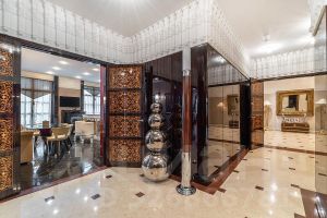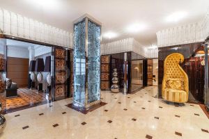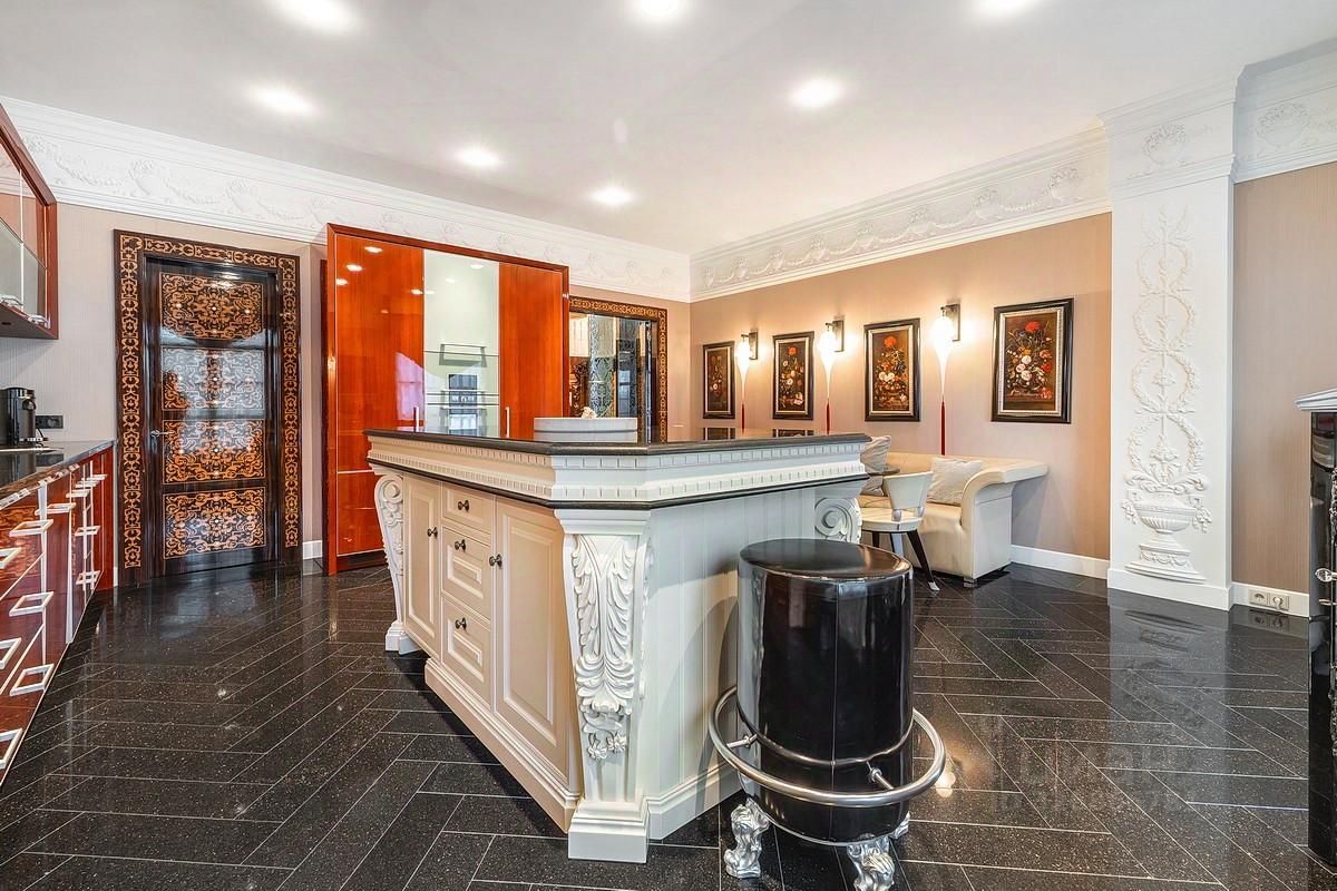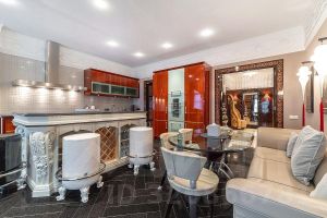 Дизайнерский ремонт выполнен с использованием натурального камня и ценных пород дерева, создавая атмосферу изысканности. Остекление на четыре стороны обеспечивает обильное естественное освещение в течение дня. В интерьере гармонично сочетаются современные технологии и высококлассные материалы.