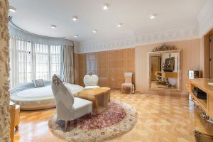 Основные особенности квартиры: светлая гостиная 75 м² с радиусными панорамными окнами, дровяным камином и видом на легендарные Патриаршие пруды; элегантная кухня-столовая 34 м² для семейных ужинов и встреч с друзьями; гардеробная 37 м², которая может служить гостевой спальней или рабочим пространством; мастер-спальня 56 м² с просторной гардеробной и окнами в ванной комнате для максимального уюта; две детские спальни, одна из которых с эффектным стеклянным эркером, каждая со своим санузлом и душевой кабиной.