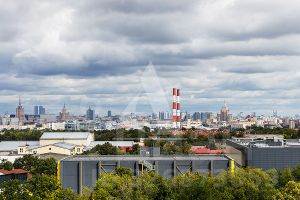 Высокие потолки, панорамные окна. Виды из окон на Мосфильм и в сторону центра.