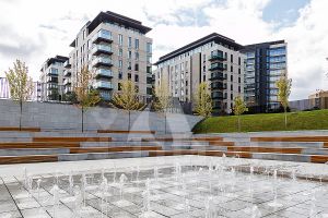 Территория жилого комплекса площадью 5 га благоустроена, проведены ландшафтные работы. На территории ЖК располагаются: кафе, фитнес-клуб с бассейном и СПА, детский сад, детская площадка, прогулочные зоны с маленькими фонтанами.