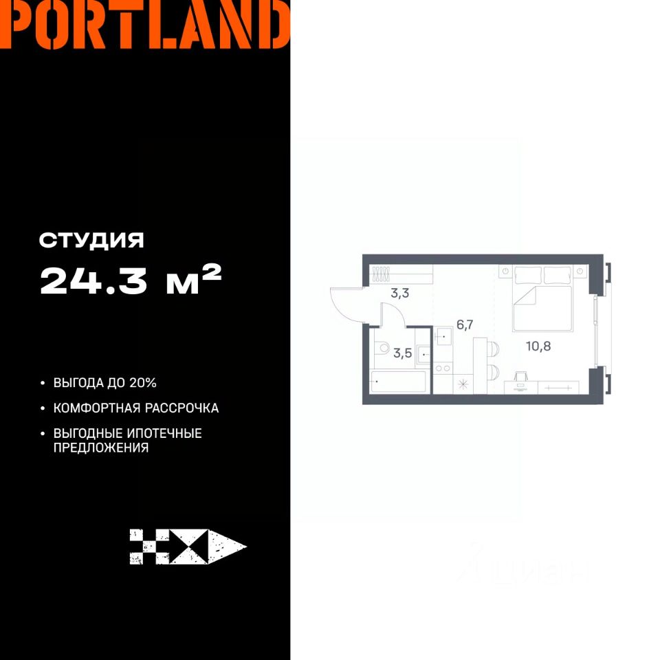 Продаётся студия, 5 этаж в жилом комплексе бизнес-класса Portland от девелопера FORMA. ЖК расположен на берегу Москвы-реки в северной части района Печатники в акватории Южного речного порта.