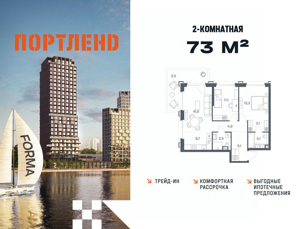 Цены указаны с условием 100% оплаты и стандартной ипотеки. Продаётся 2-к. квартира, 5 этаж в жилом комплексе бизнес-класса ПОРТЛЕНД от девелопера FORMA. ЖК расположен на берегу Москвы-реки в северной части района Печатники в акватории Южного речного порта. Основные преимущества проекта: • Самая протяженная береговая линия реки в Москве 13 км. • Вид на реку в сторону запада панорамные окна на самое широкое водное пространство Москва-реки (900 м) и на закат. • 95% квартир с видом на воду. • К ПОРТЛЕНД не примыкает крупных автомагистралей - отсутствие фонового шума дорог. • В перспективе ближайших 11 лет на территории района запланировано грандиозное преобразование и комплексное развитие. • Собственная набережная длиной 412 м., которая после завершения строительства сомкнется с эко-парком Печатники. • Прямой выход к воде и отсутствие проезжей части между ПОРТЛЕНД и береговой линией. • Инфраструктурное разнообразие: супермаркеты, крупные торговые центры, рестораны, кафе, фитнес-клубы, бьюти-салоны, компании сферы услуг и многое другое. • Собственная школа на 300 мест и детский сад на 275 мест. • Паркинг на 650 м/м • Транспортная вседоступность: метро, авто, велосипед, речной трамвай, канатная дорога • 15 мин. пешком до м. Печатники, 15 мин. на авто до ТТК, 20 минут на авто до Садового кольца