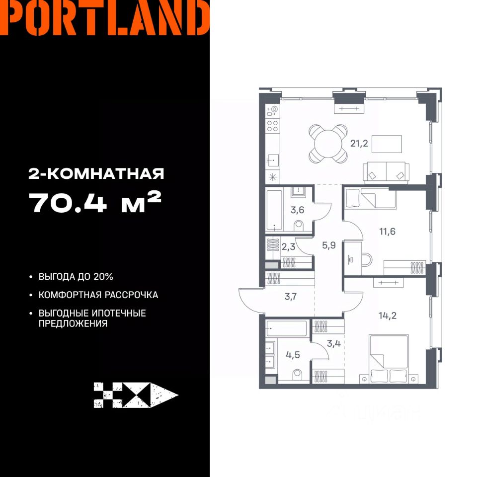 Продаётся 2-к. квартира, 2 этаж в жилом комплексе бизнес-класса Portland от девелопера FORMA. ЖК расположен на берегу Москвы-реки в северной части района Печатники в акватории Южного речного порта.