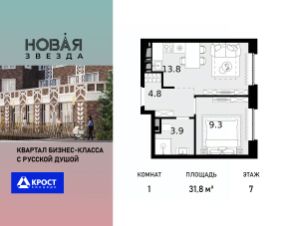 Продаётся 1-к квартира 31.8 кв.м. на 7-м этаже 22 этажного дома, корпус 6 - Резиденция "Хабаровск". Без отделки.