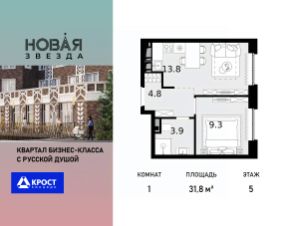 Продаётся 1-к квартира 31.8 кв.м. на 5-м этаже 22 этажного дома, корпус 6 - Резиденция "Хабаровск". Без отделки.