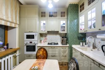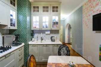 На кухне установлена встроенная техника Bosch: газовая варочная панель, духовка, СВЧ, вытяжка. Новый холодильник Bosch. Кухонный гарнитур в классическом стиле в идеальном состоянии. Есть подсветка. Проточный фильтр для воды.