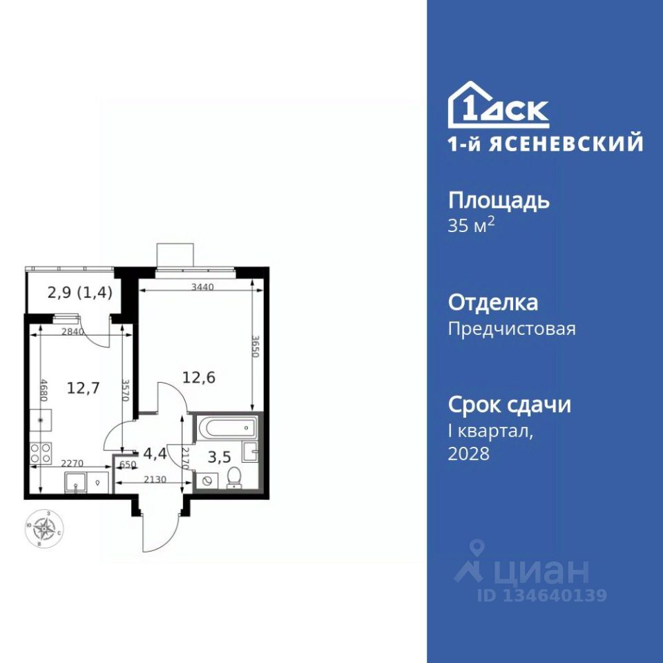 Продаётся 1-к квартира номер 127 общей площадью 35.2 кв.м. на 8-м этаже 18 этажного здания. Отделка Whitebox. Цена с учётом скидки.