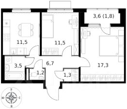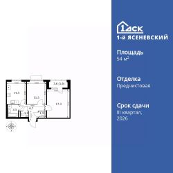 Продаётся 2-к квартира номер 116 общей площадью 54.8 кв.м. на 13-м этаже 16 этажного здания. Отделка Whitebox. Цена с учётом скидки.