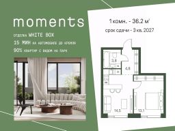 Продается 1-к. квартира номер 542 общей площадью 36.2 кв.м. на 13-м этаже 40 этажного дома, корпус 2.3. С отделкой White Box.