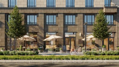 Квартира с кухней-гостиной и двумя спальнями в квартале "Метроном". Особенности планировки: балкон, вид во двор, второй санузел, предчистовая отделка.
