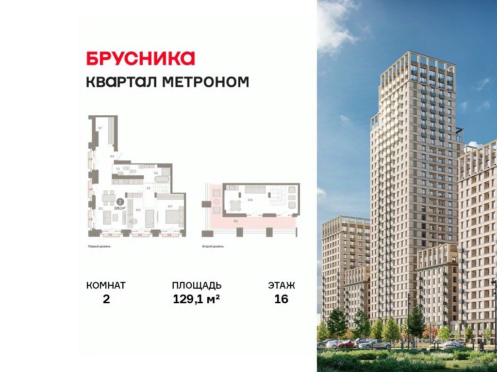 Квартира с кухней-гостиной и двумя спальнями в квартале "Метроном". Особенности планировки: балкон, без отделки, вид во двор, второй санузел, летняя кухня на крыше, мастер-спальня, терраса на крыше, французский балкон.