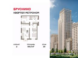 Квартира с кухней-гостиной и двумя спальнями в квартале "Метроном". Особенности планировки: балкон, второй санузел, окна в пол, предчистовая отделка, разнесённые спальни.